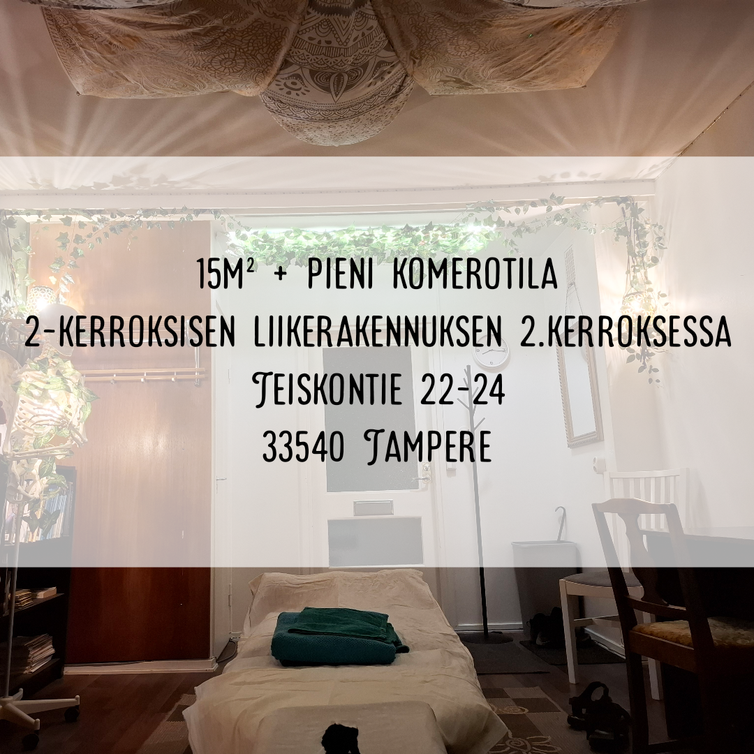 Huone toimii hierojan työtilana ja siellä on sähköinen hoitopöytä. Etsin siis pääasiallisesti toimijaa, joka työssään käyttää hoitopöytää, esim. manuaaliterapeutit, tatuoijat tjms.