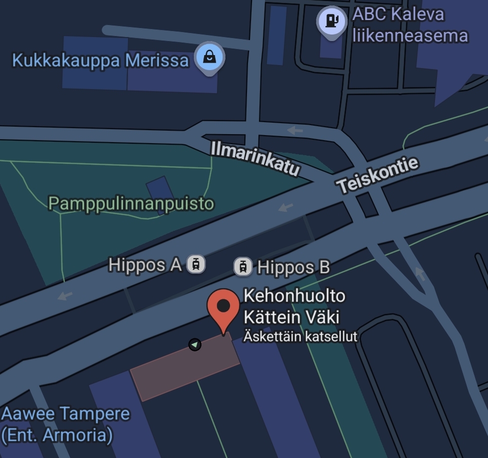 2-kerroksinen liikerakennus. Kulku kadun puolelta (Kalevan pizzerian vasemmalla puolella). Oven vieressä ovikello. Paina ja odota, niin tulen avaamaan oven. Kiinteistössä ei ole odotustilaa, joten pyydän saapumaan paikalle aikaisintaan 5 minuuttia ennen aikasi alkua.